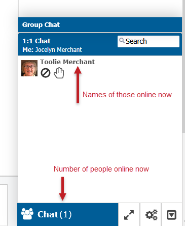 When you click on the Group Chat title, the box expands. Messages entered in the Group Chat are visible to everyone.