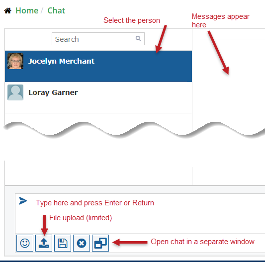 - This is the main Chat window, which you see after you log in. On the left is the list of people who have joined the chat at least once.